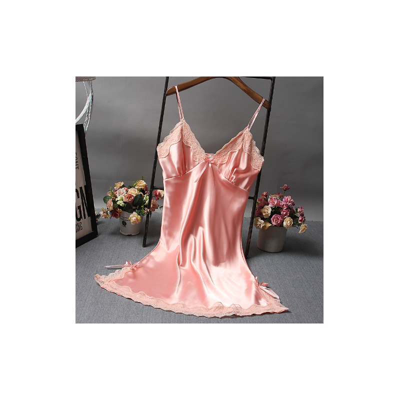 (情趣内衣)性感蕾丝吊带睡衣裙 (粉色)